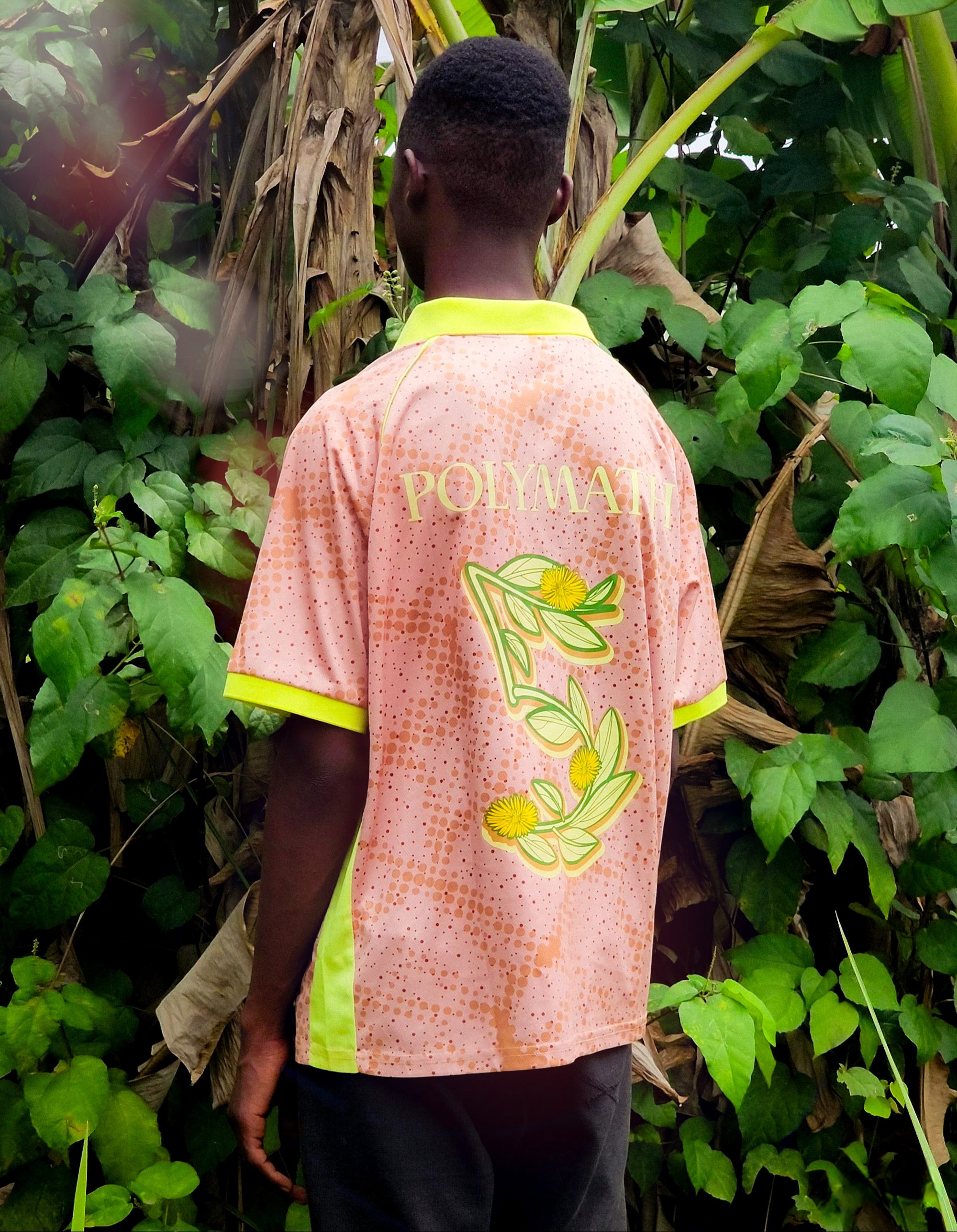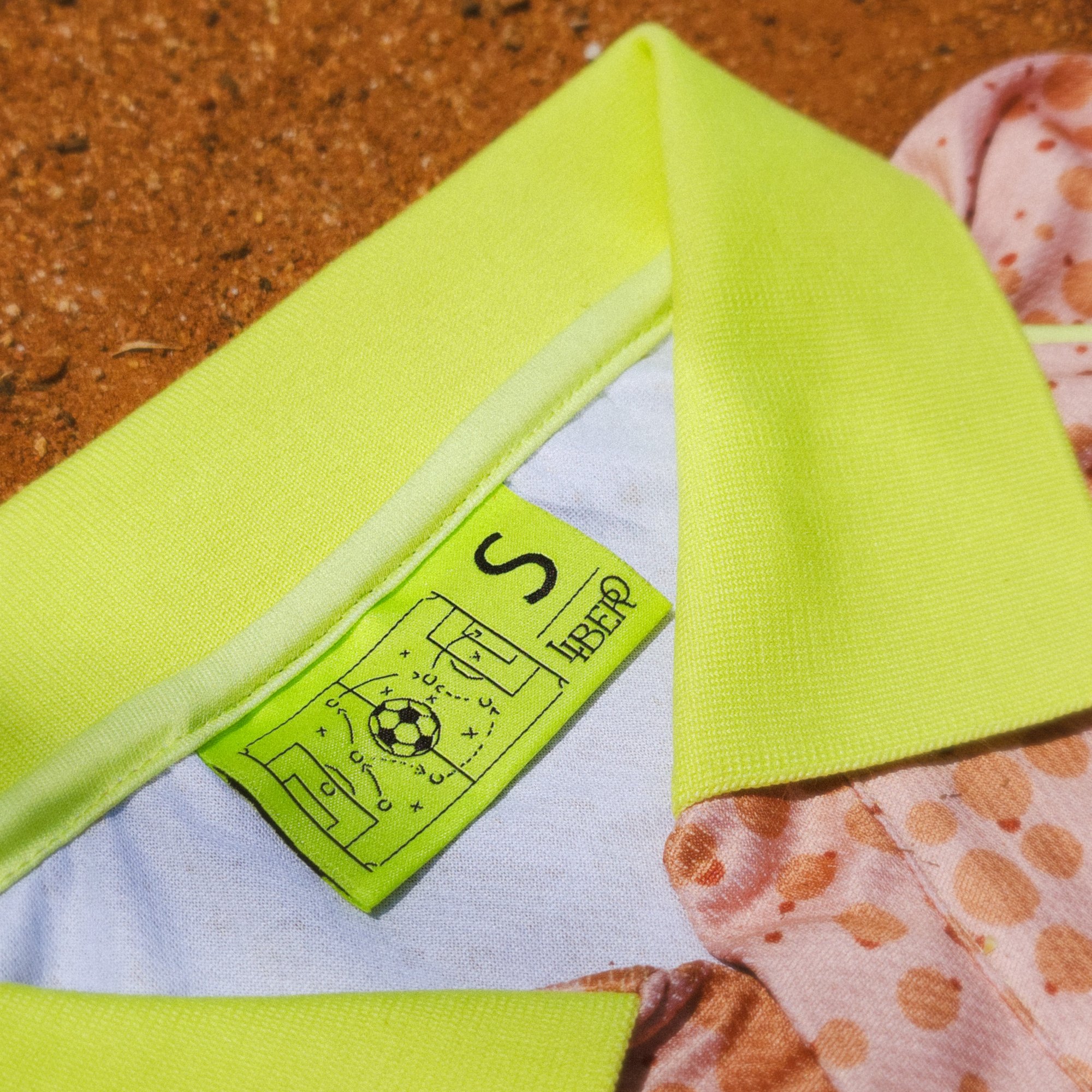 Graphic elements are inspired by the soccer pitch of my childhood in Cotonou — a love letter to the game: laterite soil, singapore daisies.